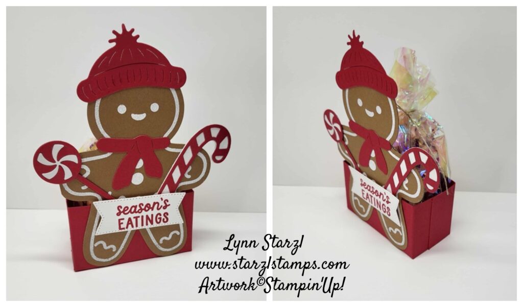 In the video I show how I line up my stamp on top of the already die cut gingerbread man. I didn’t even try to stamp first and then die cut. This works for me. I love making treat favors for the mail carrier, hair stylist, etc. Stampin’Up! supplies are below, Just click to order! Happy stamping!